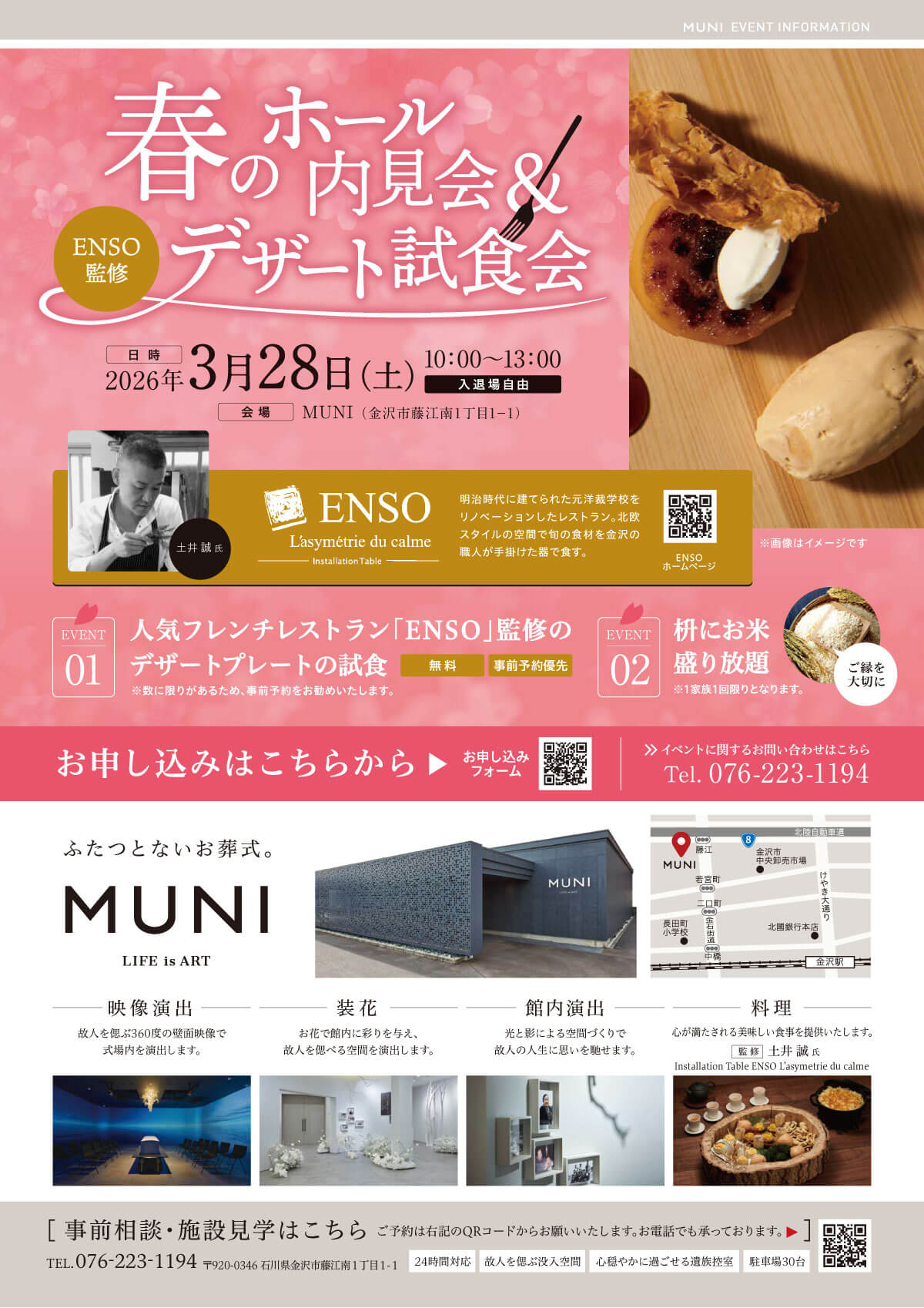 その終焉を飾る場所として、MUNI は、その生き方を敬い、心ゆくまで故人に向き合える場所にしたい。